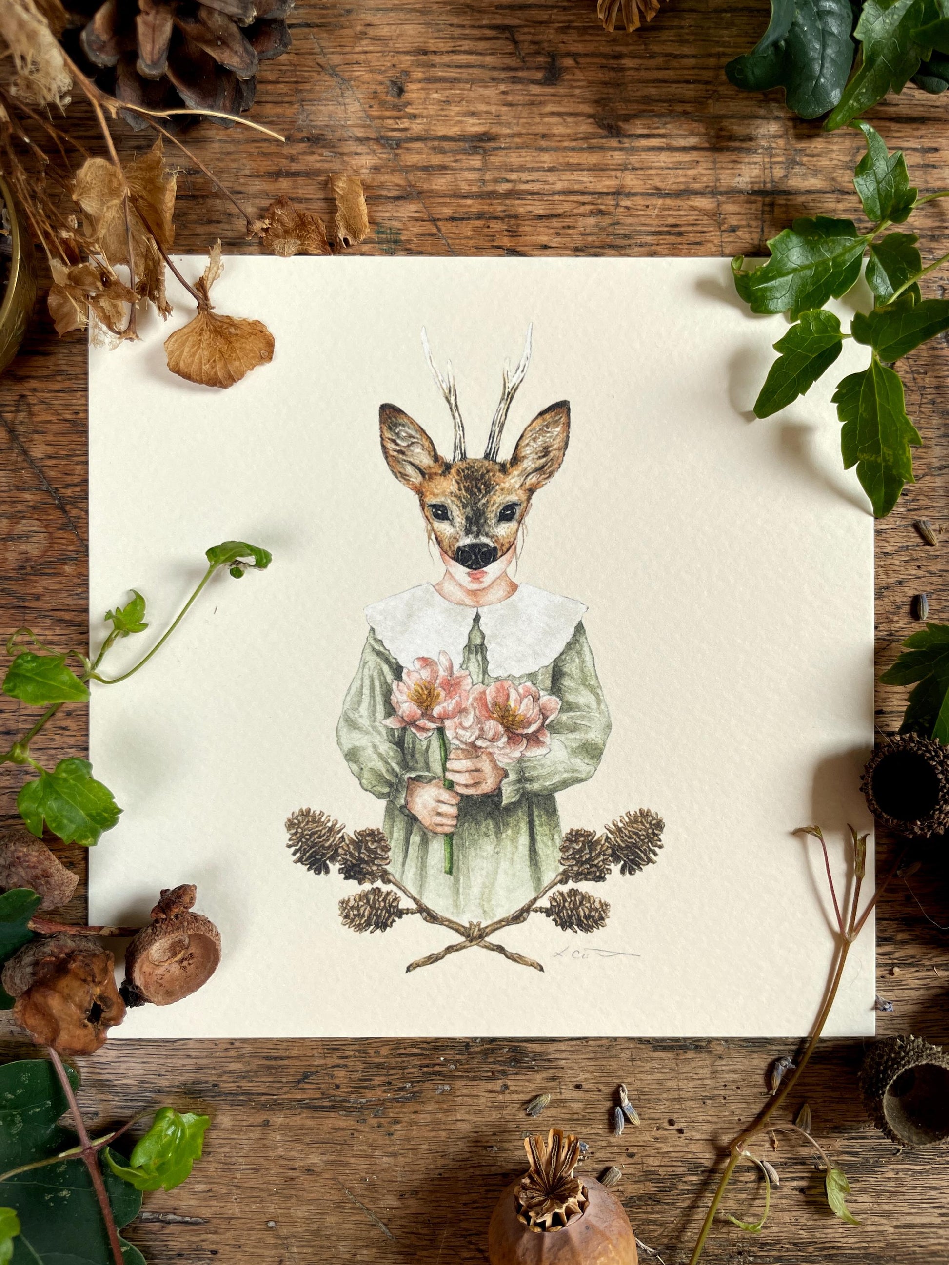 Originally painted with watercolours, professionally printed on 300gsm lightly textured card. All prints arrive in a compostable cello bag, with a backing card.
