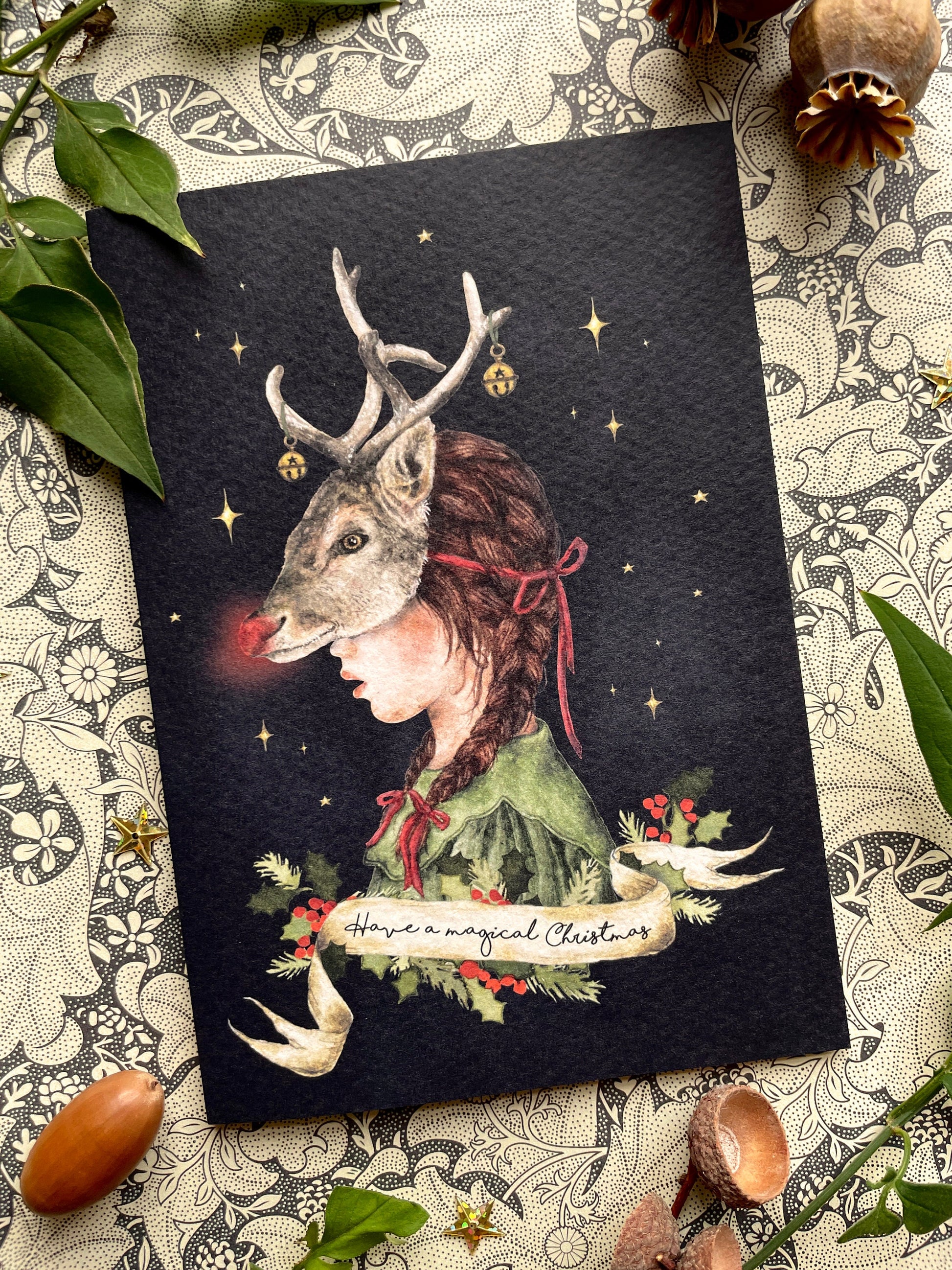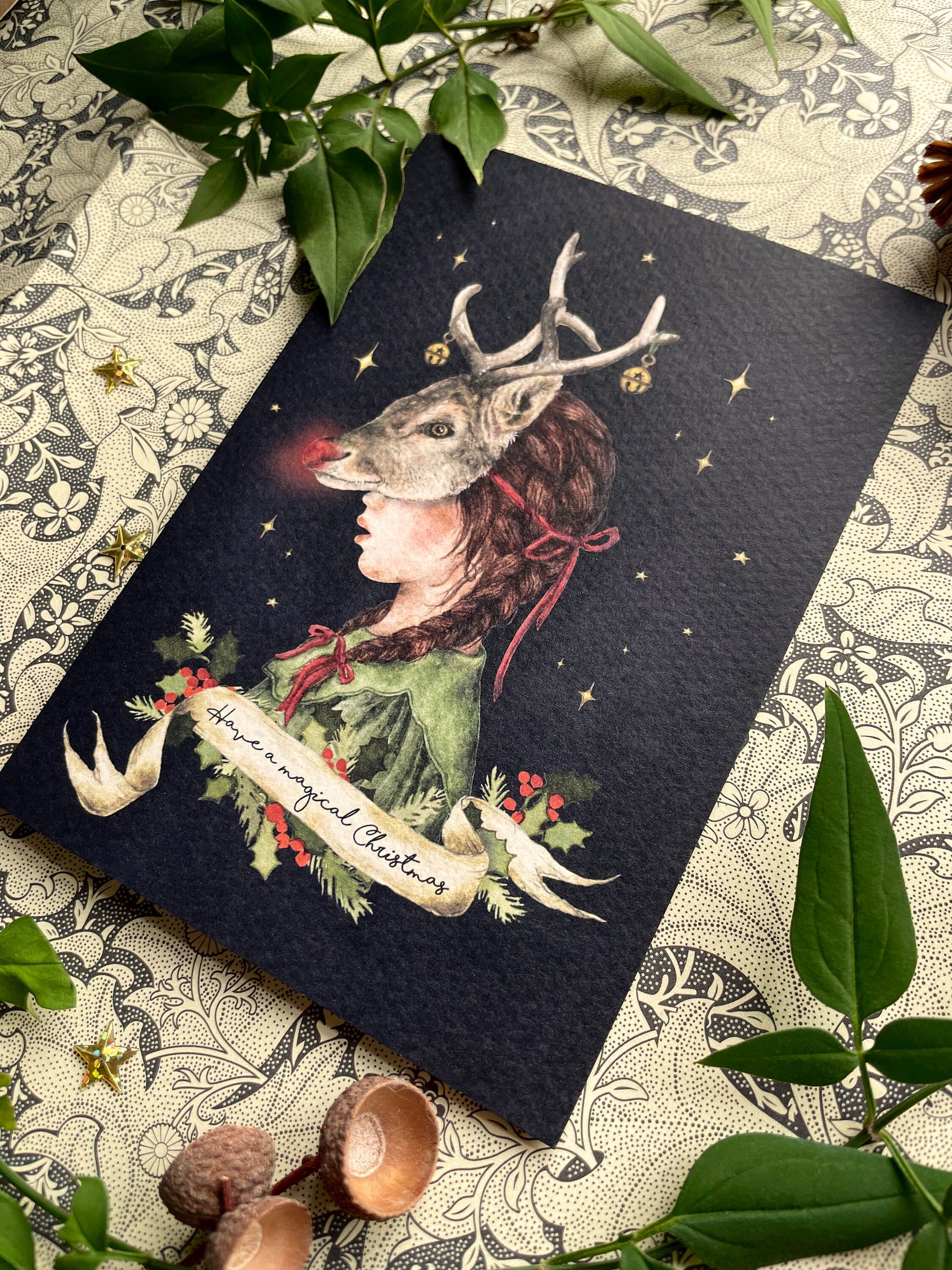 Have a Magical Christmas Watercolour Rudolph Greetings Card