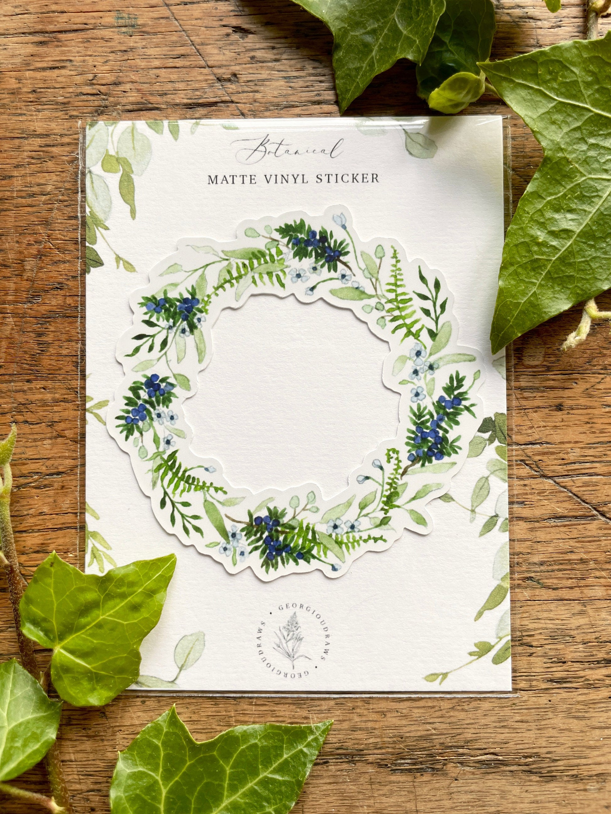 Watercolour Juniper Wreath Matt Vinyl Floral Sticker | Nature Illustration Art